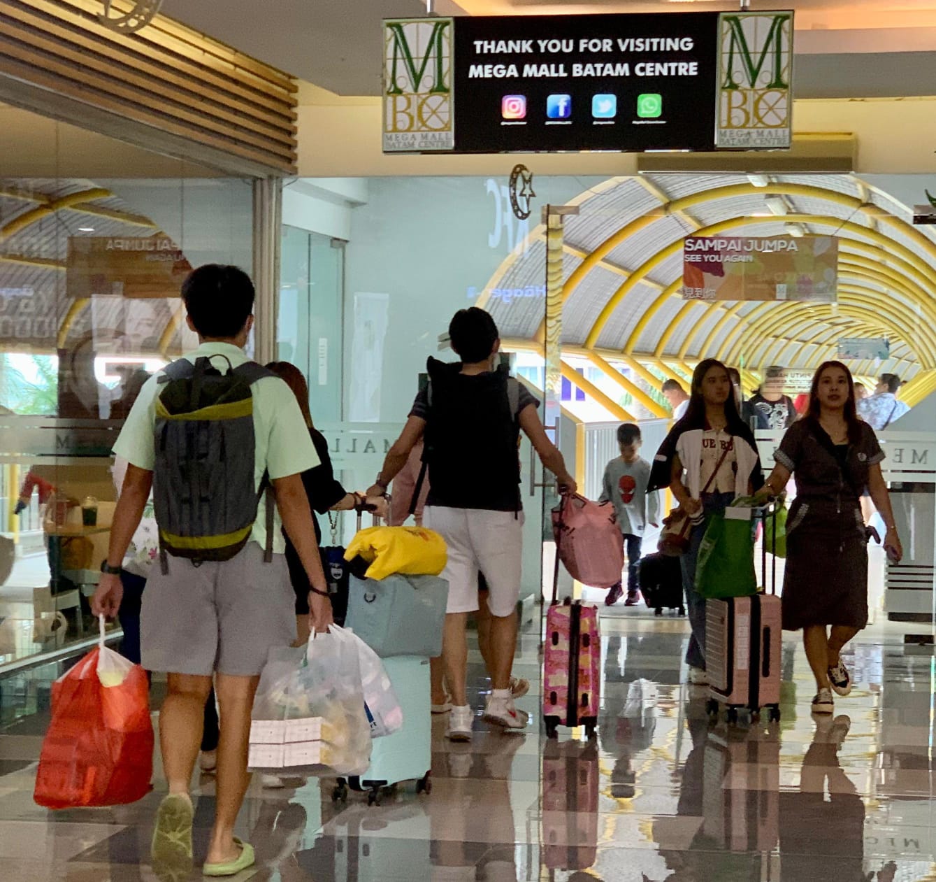 Di pusat perbelanjaan yang berseberangan dengan Pelabuhan Internasional Batam Centre itu, terlihat sejumlah Wisman yang hilir mudik dan masih menenteng koper dan tas mereka.