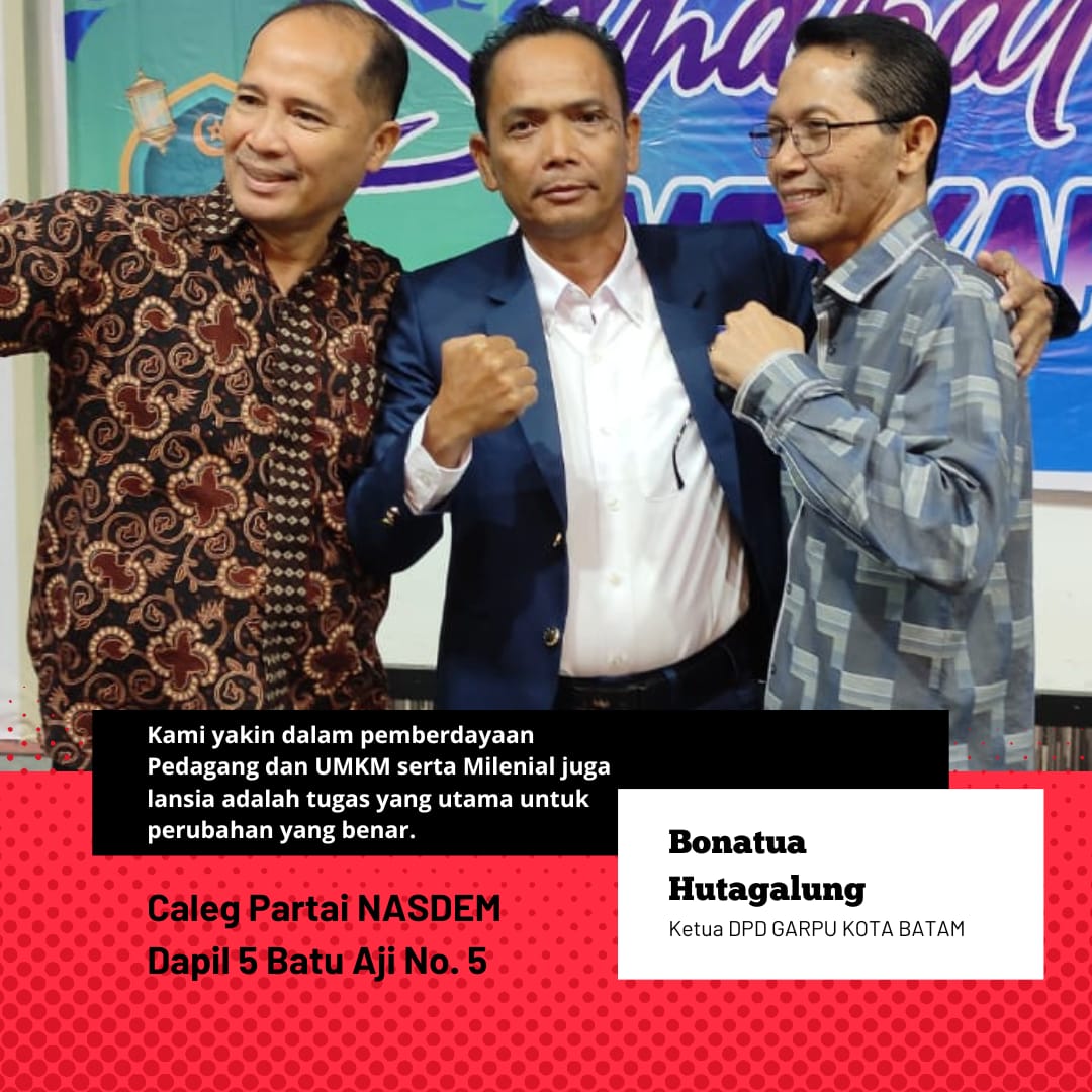 9Info.co.id | BATAM – Bona Tua Hutagalung, yang saat ini menjabat sebagai Ketua Dewan Pimpinan Daerah (DPD) Gerakan Restorasi Pedagang dan UMKM (Garpu) Partai Nasdem, telah resmi mengumumkan niatnya untuk maju sebagai Calon Legislator Dewan Perwakilan Rakyat Daerah (DPRD) Kota Batam dari daerah pemilihan (dapil) Batuaji pada Pemilihan Legislatif 2024 mendatang.