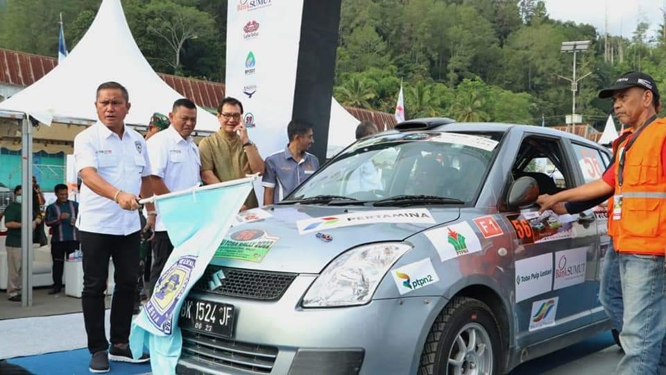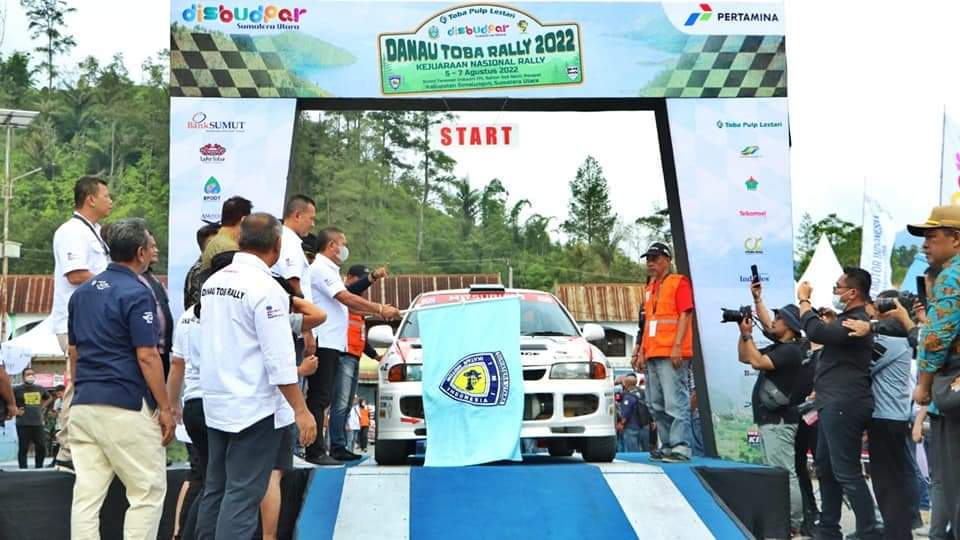 Sebelumnya Ketua IMI Sumut Harun Mustafa Nasution dalam sambutannya menyampaikan terimakasih kepada seluruh peserta Danau Toba Rally 2022 yang telah hadir dari berbagai provinsi di Indonesia dan telah hadir di Danau Toba untuk mengikuti kejuaraan Nasional Danau Toba Rally 2022.