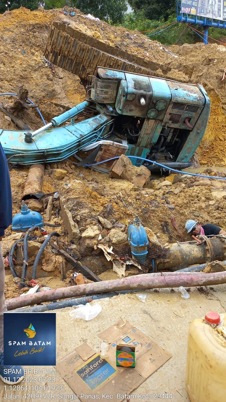 Direktur Badan Usaha SPAM BP Batam, Denny Tondano mengatakan, kejadian itu bermula dari ekskavator yang berada diatas bukit, tumbang karena adanya pergeseran tanah. Sehingga menghantam dua pipa air yang berada dibawah.