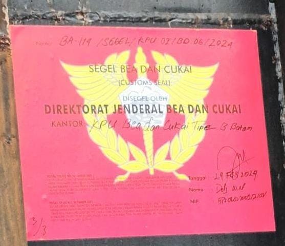 Informasi penyegelan kapal CR-6 ini dibenarkan langsung oleh Kepala Bidang Penindakan dan Penyidikan BC Batam, Sisprian Subiaksono.